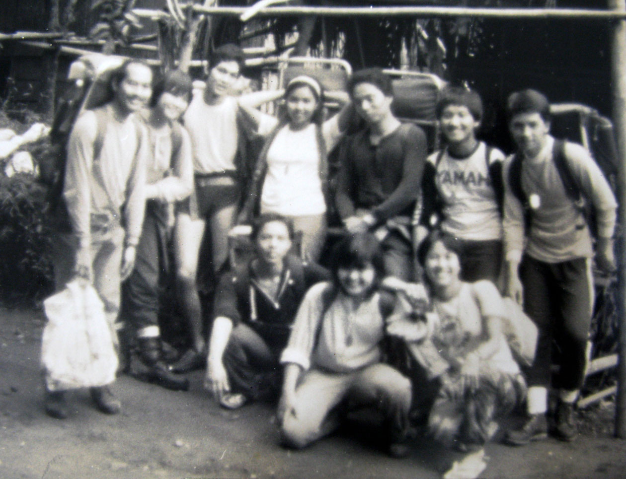 Induction climb, Mt. Banahaw, November 1981: Top photo standing, Nilo Ocampo, Lormie Valino, errrrrr…, Bendie Aragon, Angel, errrrr…., and Ban Ibanez, and infront, Dondie, me, and Cleofe. Above, Binhi Santos-Cuyugan, Boboy Francisco, errrr and errrr… and Bendie Aragon.