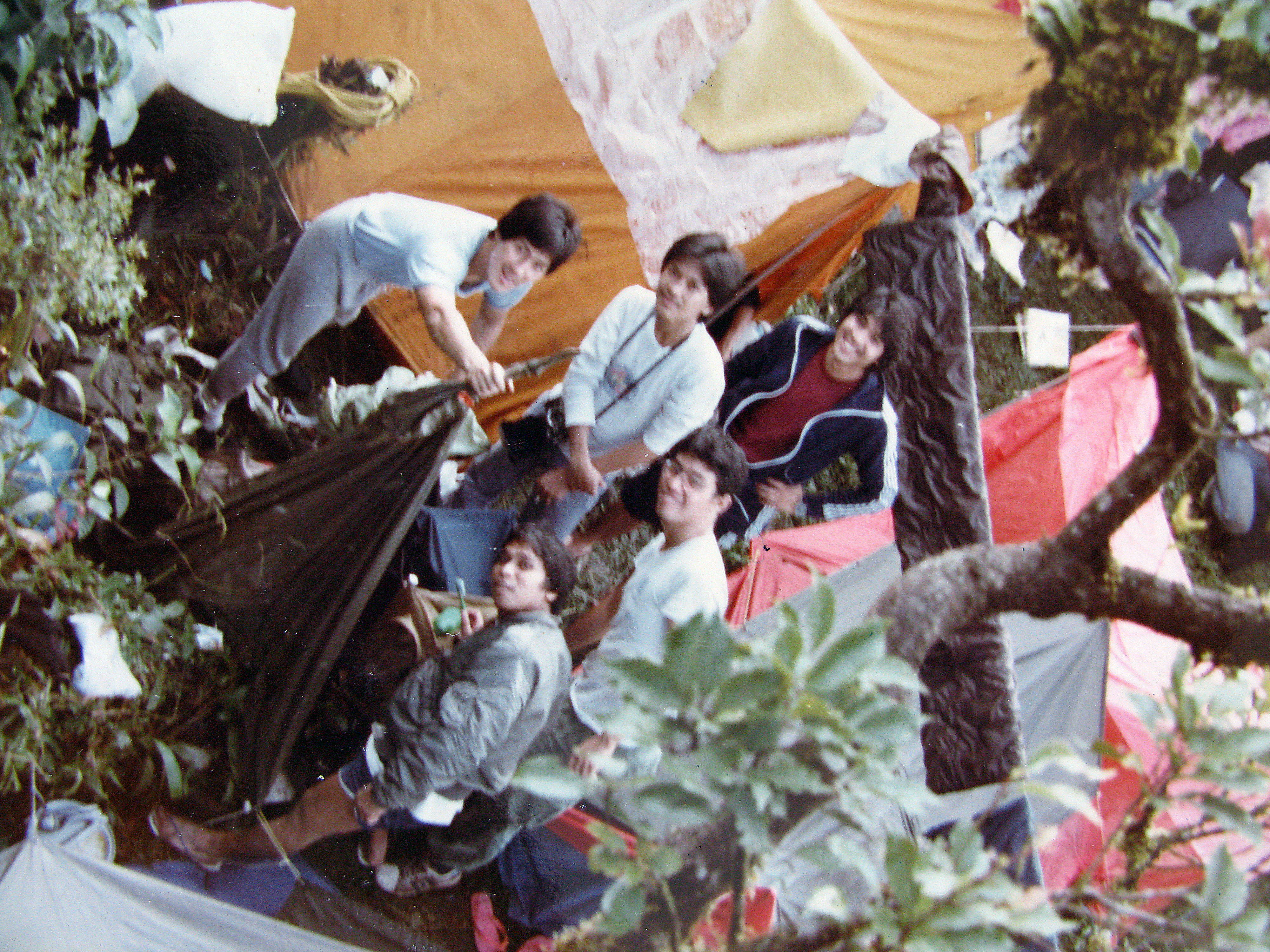 Up a tree on the peak of Mt. Makiling. Down there are (clockwise from guy in sweatpants), Luigi Gana, errrrr…., Bart Guingona, errrrr… (is that Lucas?), and Eric Acaylar.