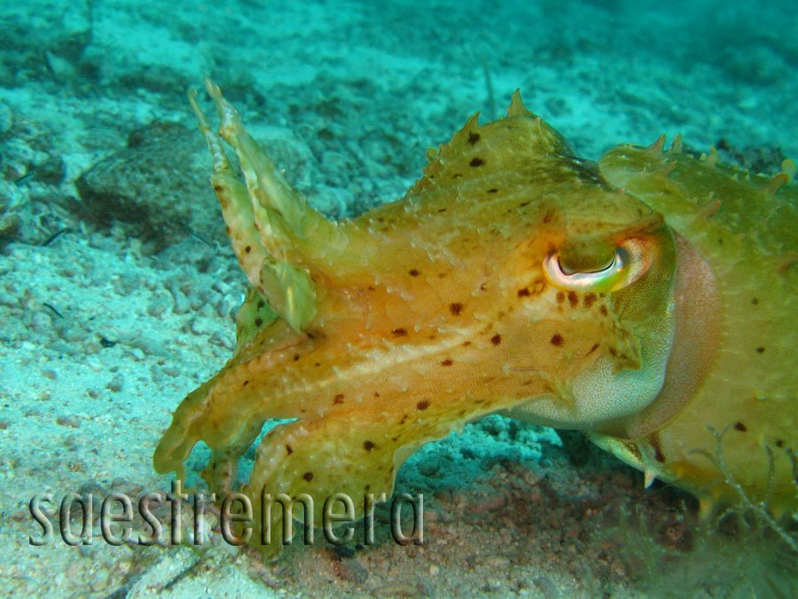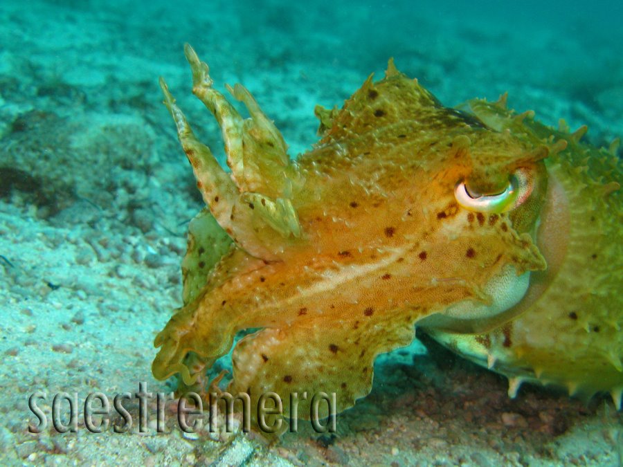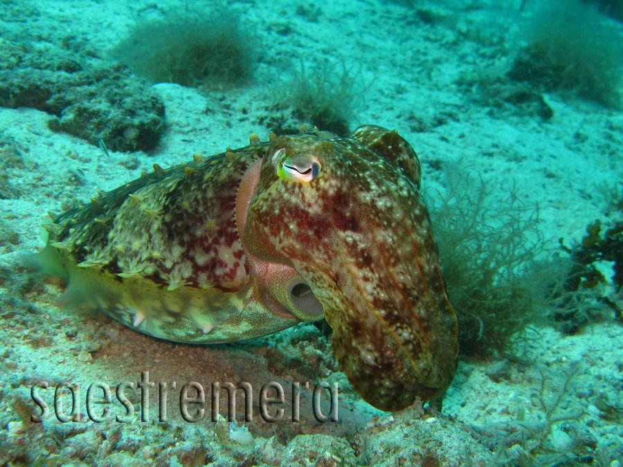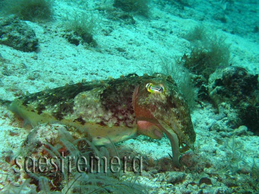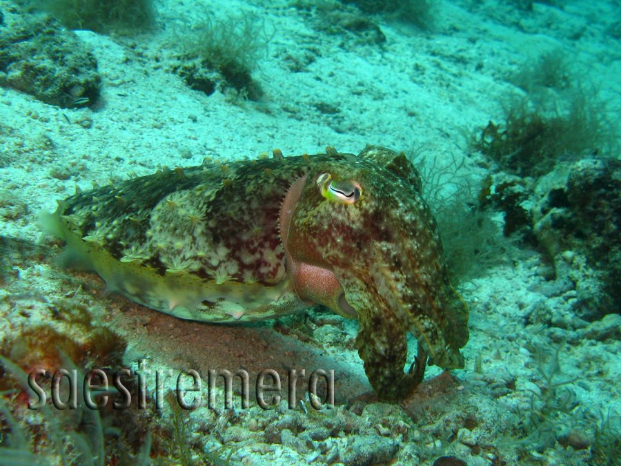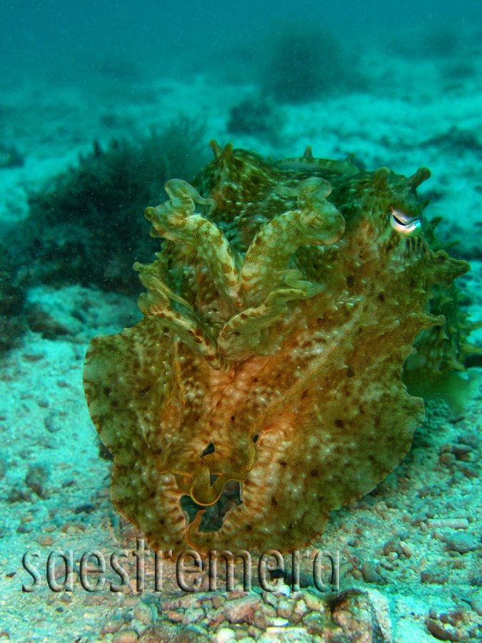 I turned around to find cuttlefish following me, now showing a different color. A show-off! And it was even closer than when I was the one who approached it… Hmmm…