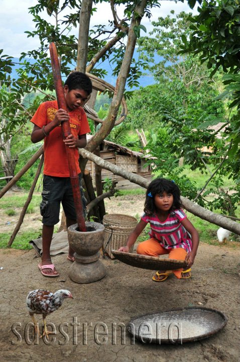 The Matigsalug tribesfolk have a way of dealing with this, a process they call “tinanok” from the root word “tanok” (to cook till dry). Palay or rice grains that still has hull is placed in a pot and mixed with a little water, just enough to soak the whole batch. The pot is placed on a fire and the palay is made to cook until all the water is dried up.