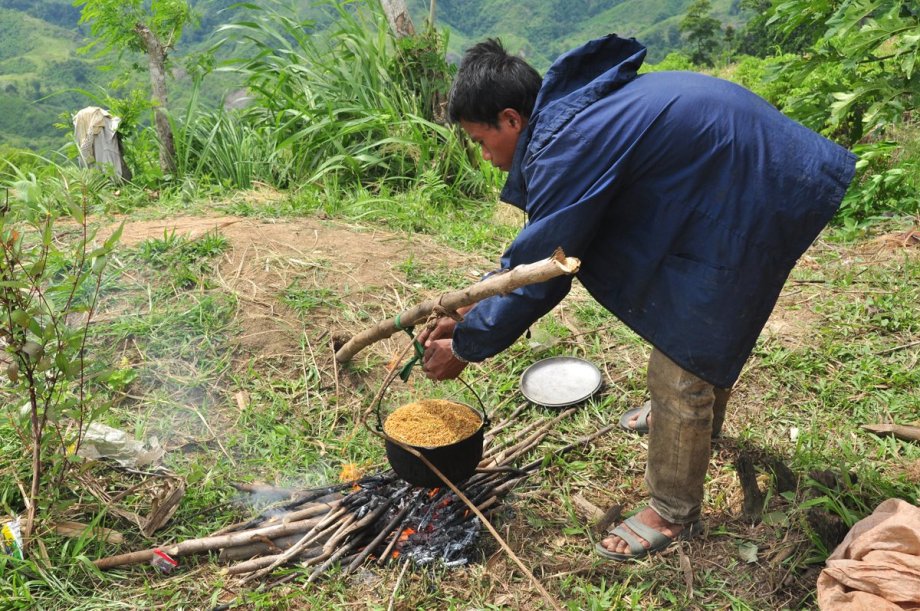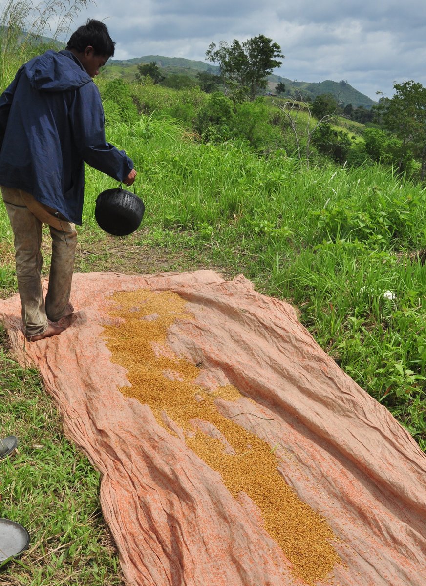 The grains are then dried under the sun for an hour or two, just in time for lunch.
