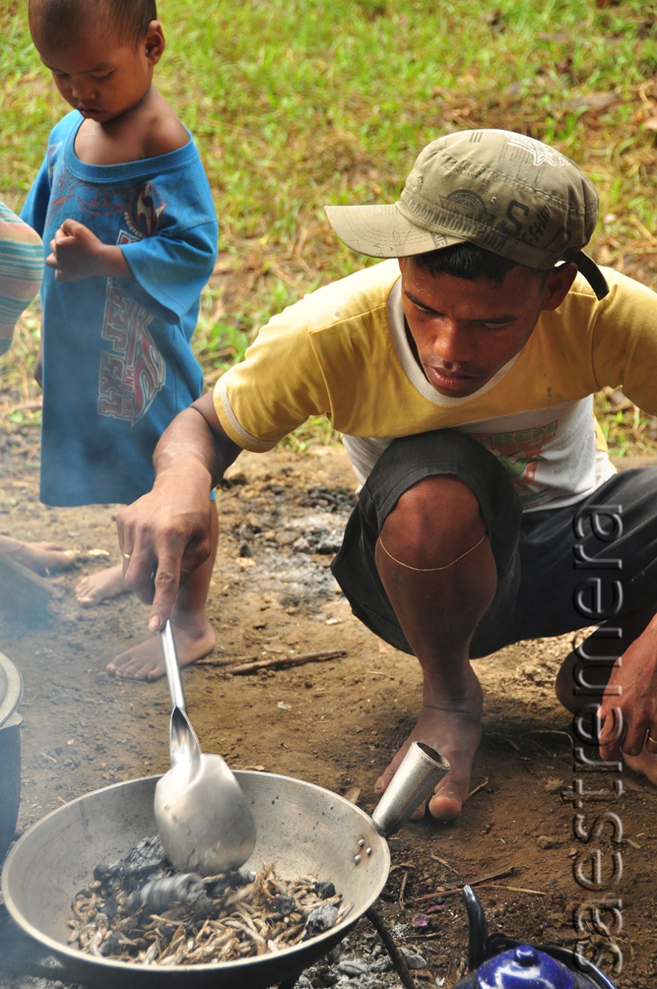 Placing a frying pan on a fire and pouring the dried dilis in it, they gathered the embers from below and mixed this into the dilis. This will add flavor, we were told, and would taste better than dilis that is just heated on a greaseless frying pan.
